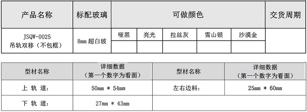 JSQW-0025 8mm超 白玻 吊轨双移 (不包框)