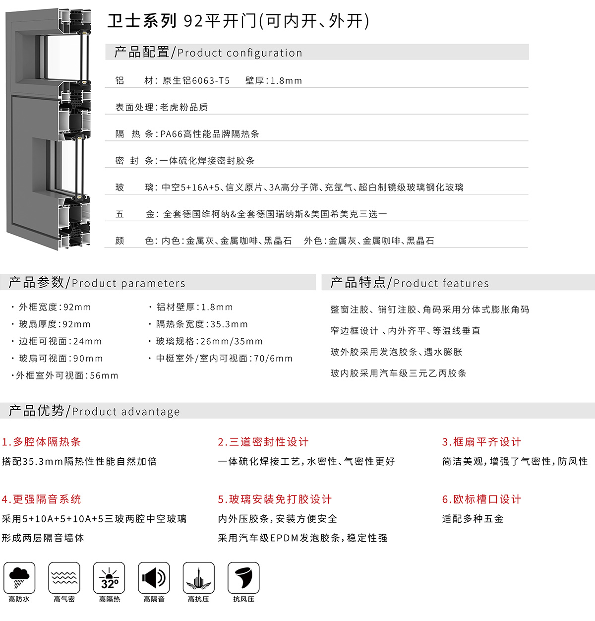 92平开门(可内开、外开)