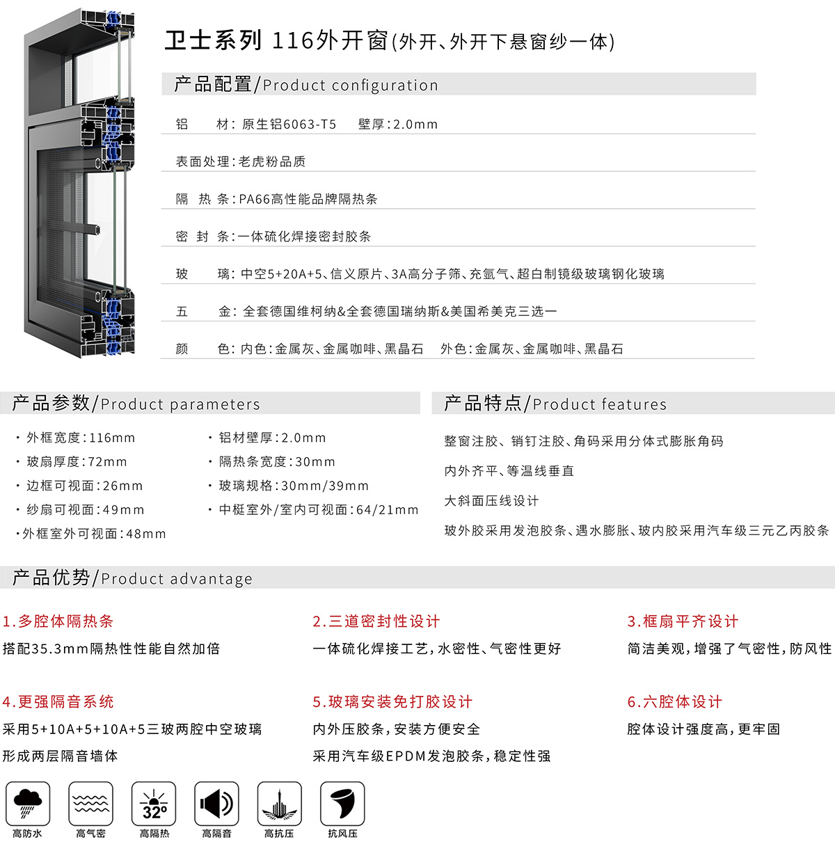 116外开窗(外开、外开下悬窗纱一体)