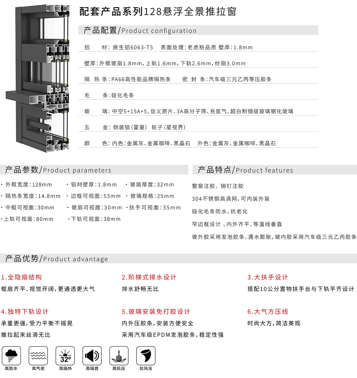128悬浮全景推拉窗
