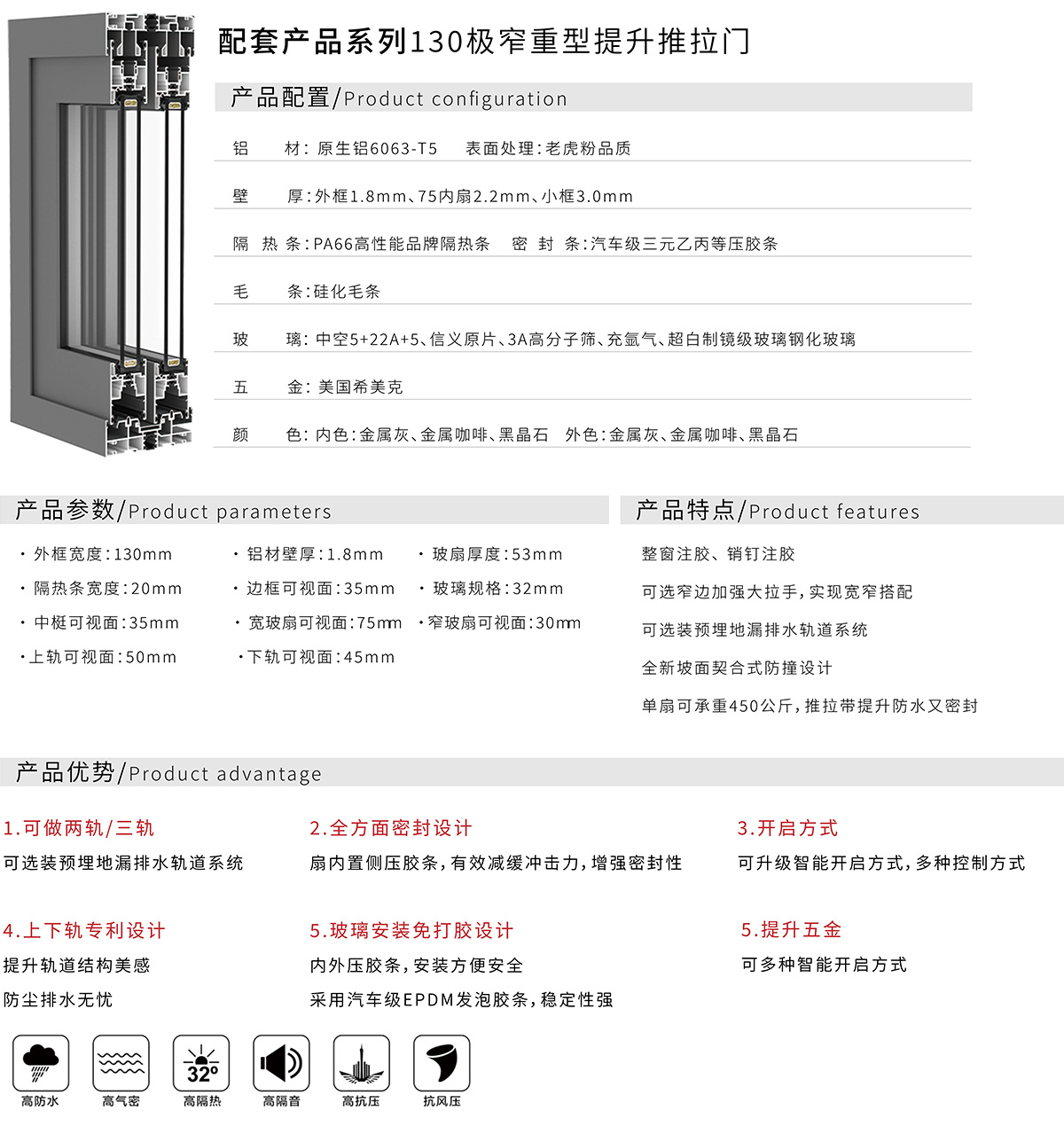 130极窄重型提升推拉门
